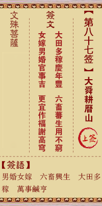 當前的位置:三藏算命網 - 算命大全 - 文殊菩薩靈簽 - 文殊菩薩靈簽解籤 第八十七簽