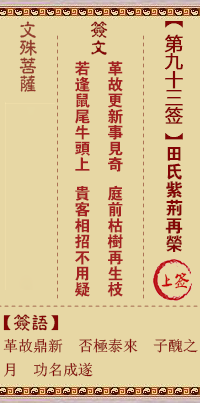 當前的位置:三藏算命網 - 算命大全 - 文殊菩薩靈簽 - 文殊菩薩靈簽解籤 第九十三簽