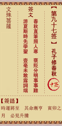 籤詩:春秋直筆照人寒,褒貶分明事事難,游夏斯時先學聖,一毫未敢露詞端。