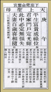 【台灣育德媽祖同修會】古云:「生死有命,富貴在天。」平生只要有富貴之命,一定有祿位可求,也一定能光耀門楣。家和萬事成,只要夫婦百年和合,夫唱婦隨,一定不會有什麼損失的!某君因其妻未生男,欲納偏房,乃至媽祖廟求卜,得此簽,一見「夫妻百歲喜相隨」,乃作罷,家庭因而因而免於破裂,其後竟得一男,正應了「此中必定無損失」句。此簽問求財,乃得順利達到目的。問功名,有金榜題名吉兆。李君參加特種考試,夜夢乘金龍上天,不知主何吉凶,乃赴廟求籤,得此簽,果高中金榜,正應了前二句「平生富貴成祿位,君家門戶定生輝」。此簽問婚姻,乃和好順利與幸福之良緣。問謀事,則須下一番功夫。問訴訟,以和為貴。