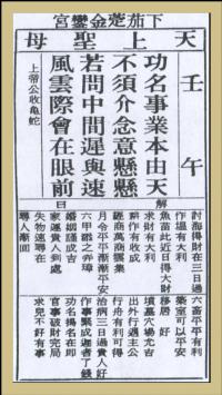 【台灣古典星座網】功名事業的成敗,本來運氣佔了大半,所以只要盡其在我,做了最大的努力,就應該聽天由命了。若問其中期間來速與來遲,大好風雲際會的時機,就在眼前不遠了。這首籤詩,告訴當事人,功名事業的成功,全靠個人平日的努力,所謂一分耕耘一分收穫。如果平時不燒香,臨時報佛腳,那就永無成功的希望。只要你下了功夫,就會有成果的,不必在心裡擔憂。求得此簽暗示目前福報平平。問事求謀,惟有自力救濟聽天由命或求神明相助了。問求財,目前尚欠理想,但只要努力,不久就會有的。問功名,多用功,多充實自己,機會就快來了。問婚姻,緣份不夠不易成功,宜另覓對象。問疾病,三日過求神平安,醫遇貴人。