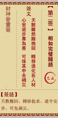 財神靈簽第2簽解籤 財神靈簽第二簽