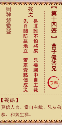 財神靈簽第14簽解籤 財神靈簽第十四簽
