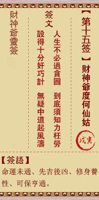 財神靈簽第15簽解籤 財神靈簽第十五簽