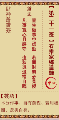 財神靈簽第21簽解籤 財神靈簽第二十一簽