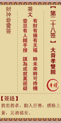 財神靈簽第28簽解籤 財神靈簽第二十八簽