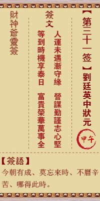 財神靈簽第31簽解籤 財神靈簽第三十一簽