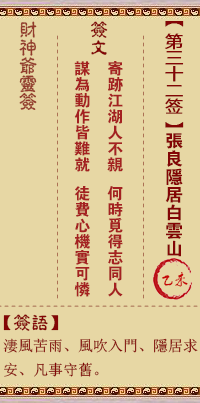 當前的位置:三藏算命網 - 算命大全 - 財神廟靈簽 - 財神靈簽解籤 第三十二簽