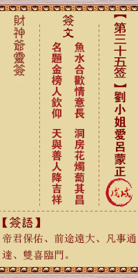 財神靈簽第35簽解籤 財神靈簽第三十五簽