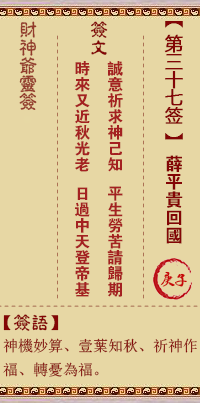 財神靈簽第37簽解籤 財神靈簽第三十七簽