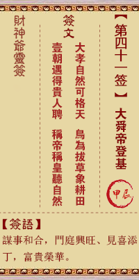 財神靈簽第41簽解籤 財神靈簽第四十一簽