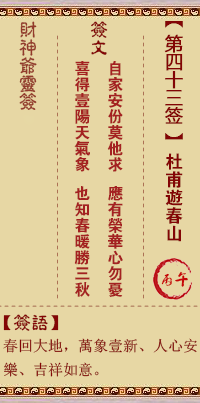 財神靈簽第43簽解籤 財神靈簽第四十三簽