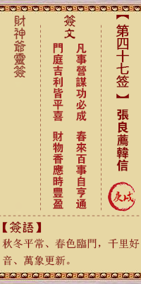 財神靈簽第47簽解籤 財神靈簽第四十七簽