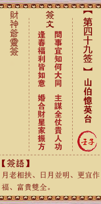 財神靈簽第49簽解籤 財神靈簽第四十九簽