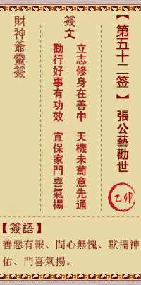 財神靈簽第52簽解籤 財神靈簽第五十二簽