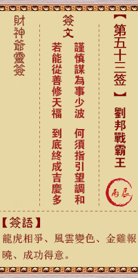 財神靈簽第53簽解籤 財神靈簽第五十三簽