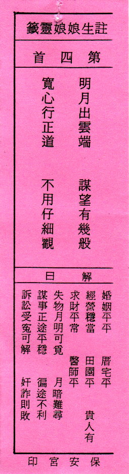 送子娘娘靈簽第4簽解籤 注生娘娘靈簽 第四簽