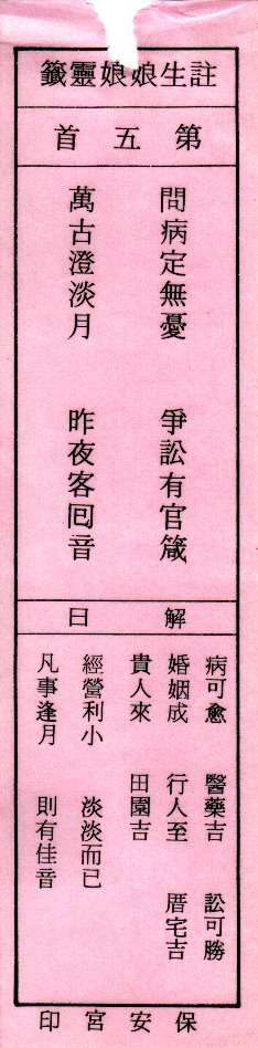 送子娘娘靈簽第5簽解籤 注生娘娘靈簽 第五簽
