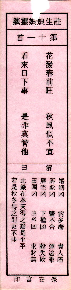 送子娘娘靈簽第11簽解籤 注生娘娘靈簽 第十一簽