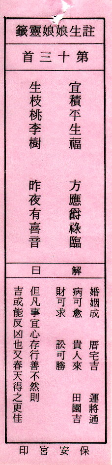 送子娘娘靈簽第13簽解籤 注生娘娘靈簽 第十三簽