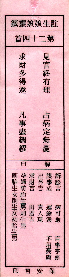 送子娘娘靈簽第24簽解籤 注生娘娘靈簽 第二十四簽