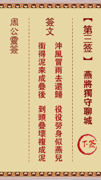 當前的位置:三藏算命網 - 算命大全 - 周公靈簽解籤大全 - 周公靈簽解籤 第三簽