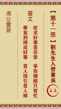 周公靈簽第十一簽:劉先生入贅東吳 上上