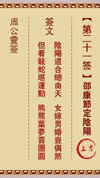 周公靈簽第二十一簽:邵康節定陰陽 上吉