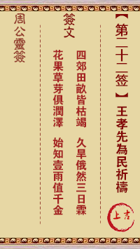 周公靈簽第二十二簽:王孝先為民祈禱 上吉