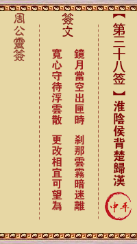 周公靈簽第三十八簽:淮陰侯背楚歸漢 中平