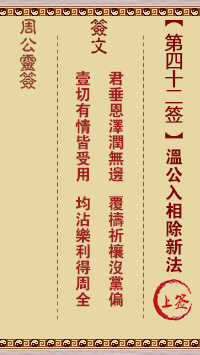 本簽示之曰。天垂甘露之泉。凡事大吉利者。亦即是先難後易者所得。功名成。交易就。婚姻雖平庸。但是難得之緣也。時運至冬季即至。六畜。田畝皆旺之時。宜勤儉。千萬不得浪透。陷已於絕境者。易言之。天降甘露。君子莫忘求謀成就。和合吉昌之簽也。