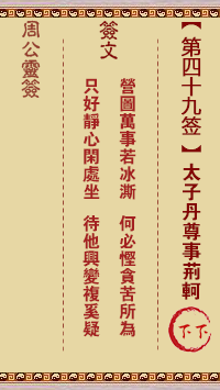 當前的位置:三藏算命網 - 算命大全 - 周公靈簽解籤大全 - 周公靈簽解籤 第四十九簽