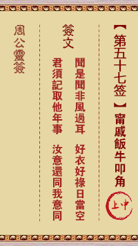 周公靈簽第五十七簽:寧戚飯牛叩角 上中