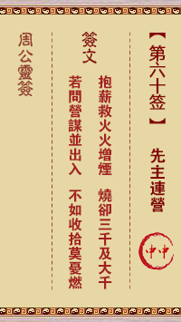本簽示之於弟子曰。抱薪救火。當然火會增煙。霉頭加以霉繇此可知。君爾凡是著手興事。必須守舊。千萬不能逞一時之勇。見人之成。見異思遷。輕舉妄動。恐怕有大害。不僅不能成事。反而將事弄砸。得不償失。易言之。總有千般一旦皆休安心守舊維得無憂。