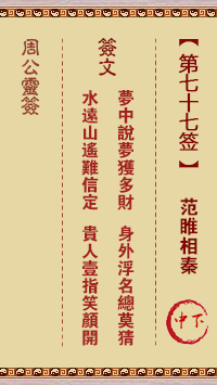 當前的位置:三藏算命網 - 算命大全 - 周公靈簽解籤大全 - 周公靈簽解籤 第七十七簽