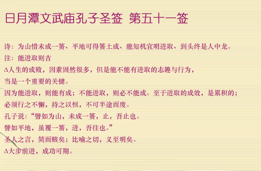 日月潭文武廟孔子聖簽 第五十一簽