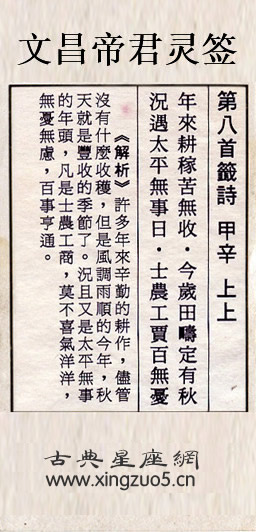 文昌帝君靈簽解籤 第八簽