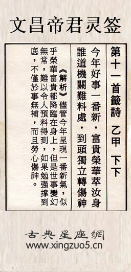 文昌帝君靈簽第十一簽:乙甲下下