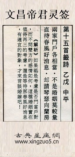 當前的位置:三藏算命網 - 算命大全 - 文昌廟靈簽 - 文昌帝君靈簽解籤 第十五簽