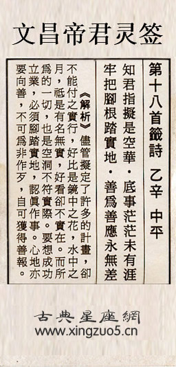 不宜妄意求謀,空自指擬,應該自我反省,改過向善,自然轉凶為吉,而受上天的保佑。