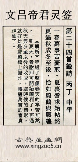 當前的位置:三藏算命網 - 算命大全 - 文昌廟靈簽 - 文昌帝君靈簽解籤 第二十四簽