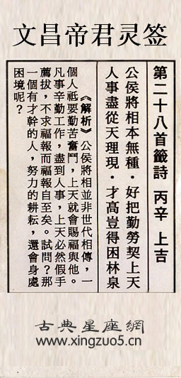 文昌帝君靈簽第二十八簽:丙辛上吉