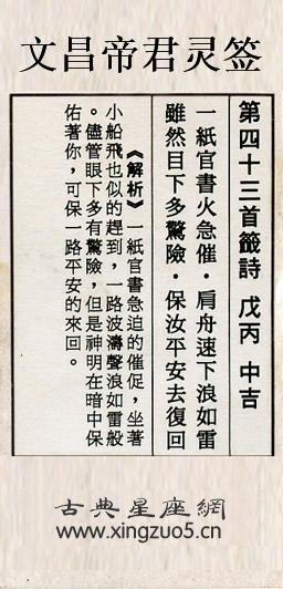 文昌帝君靈簽第四十三簽:戊丙中吉