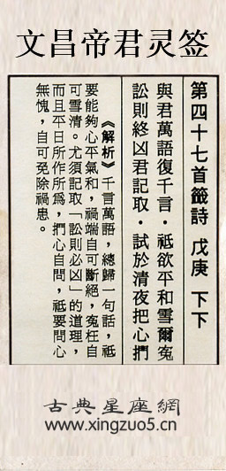 文昌帝君靈簽第四十七簽:戊庚下下