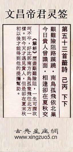文昌帝君靈簽第五十三簽:己丙下下
