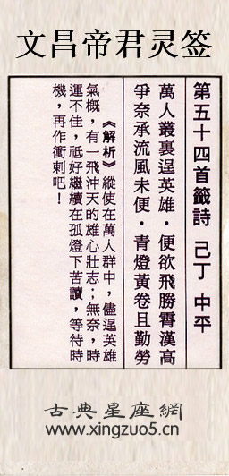 當前的位置:三藏算命網 - 算命大全 - 文昌廟靈簽 - 文昌帝君靈簽解籤 第五十四簽