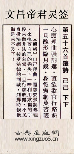 文昌帝君靈簽第五十六簽:己己下下