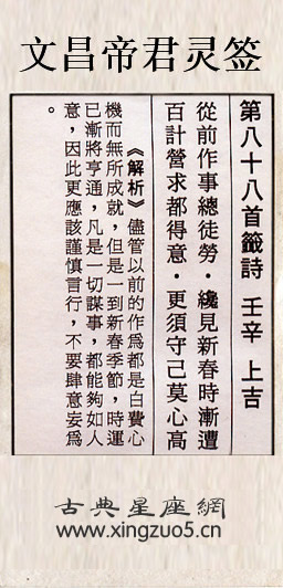 文昌帝君靈簽第八十八簽:壬辛上吉