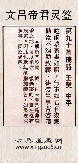 文昌帝君靈簽解籤 第九十簽